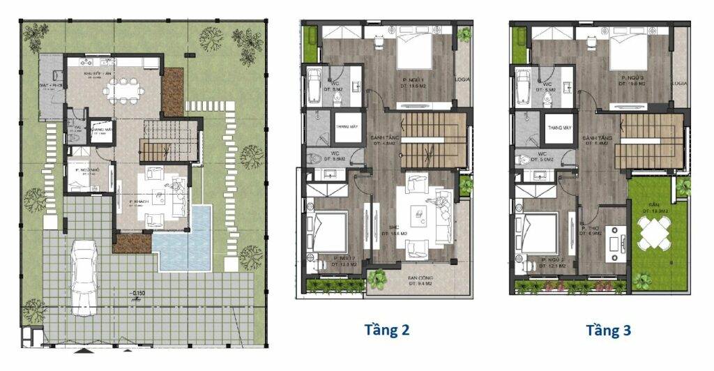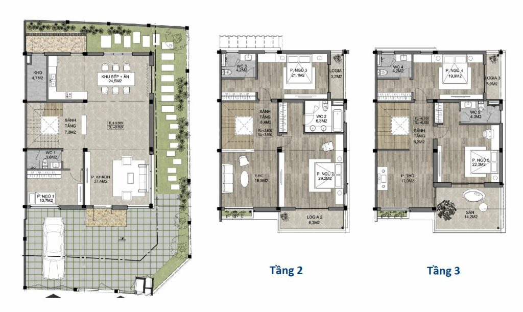 + Biệt thự song lập: Diện tích từ 170 – 312m2