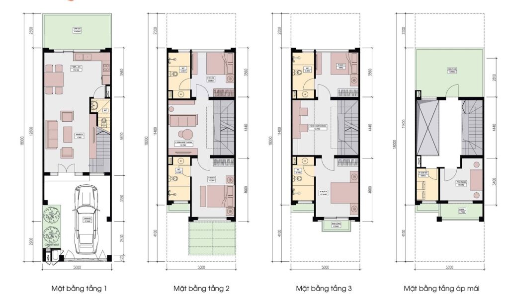 + Biệt thự đơn lập: Diện tích từ 280 – 450m2